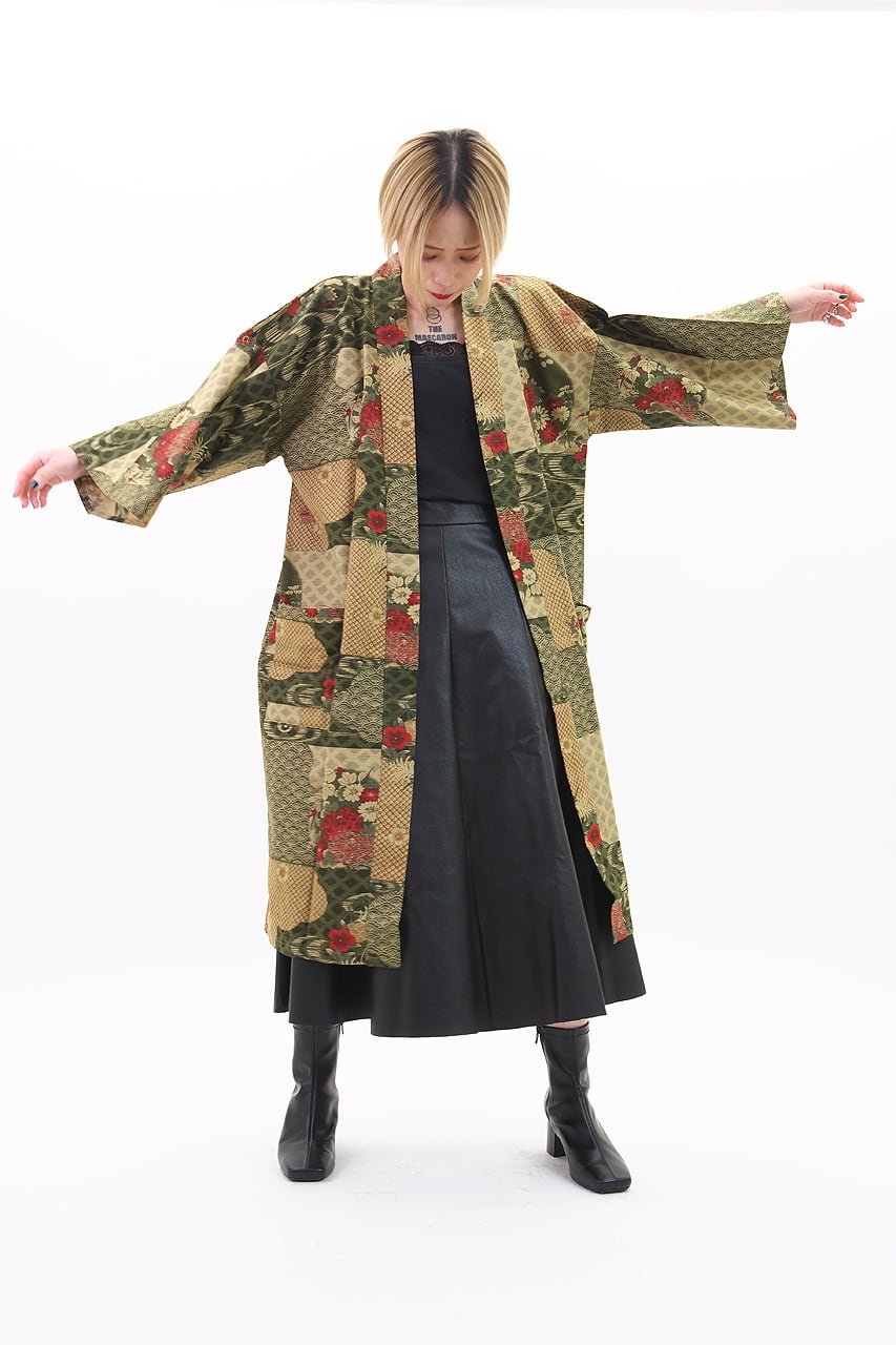 《レトロ 花》 HAPPI コート 【 "RETRO FLOWER" HAPPI COAT 】 LADIES COTTON 100% MIDDLE ハッピ 半纏 和服 和柄 和風 レトロ 和モダン 和コーデ 和ローブ ミドル丈 ショート コート マント ガウン 部屋着 コスプレ 衣装 お出かけ 日本土産 人気 日本製