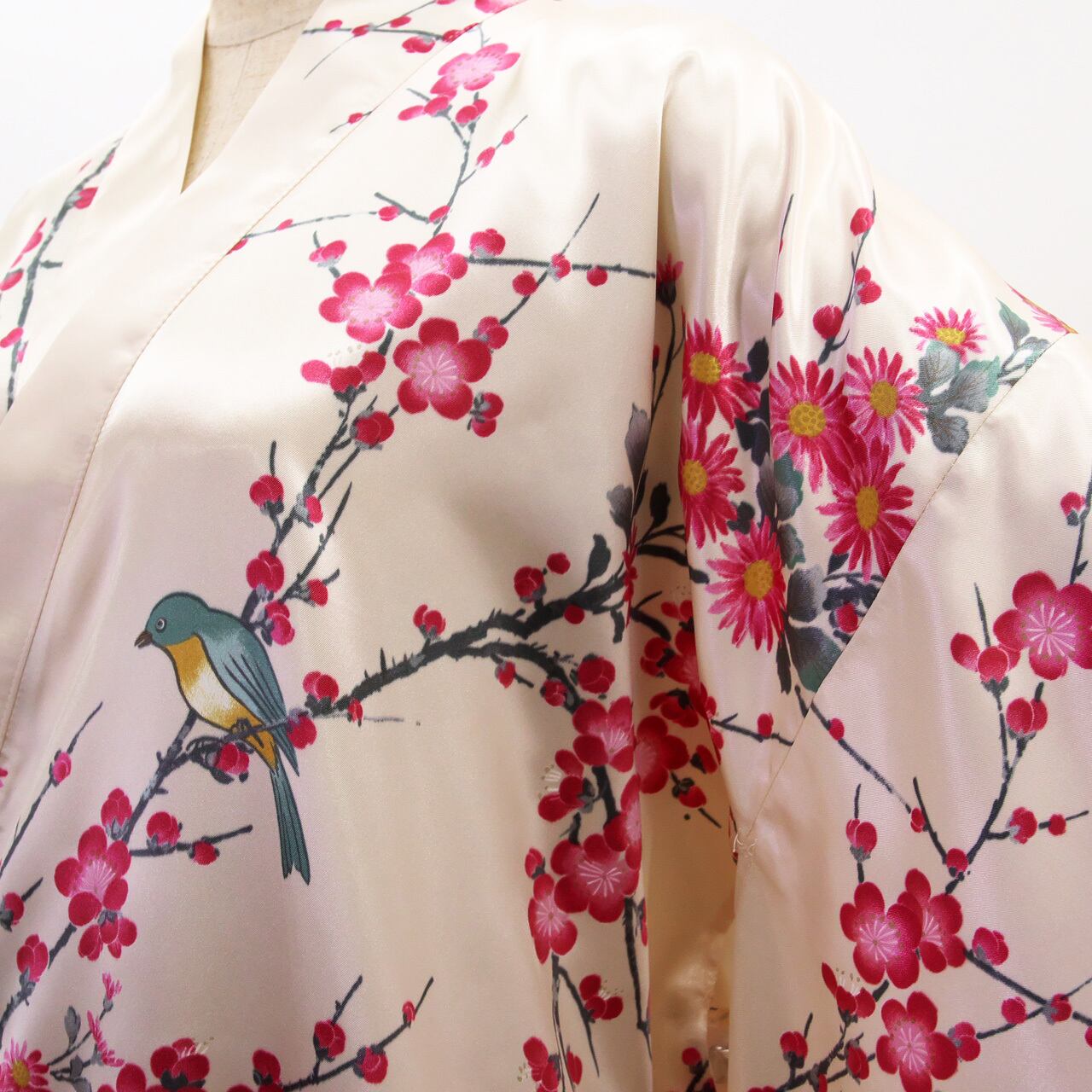 《梅》 KIMONO ローブ【 "PLUM & BIRD" KIMONO ROBE 】 LADIES POLYESTER 100% LONG 着物 和服 和柄 和風 和モダン 和コーデ 和ローブ コート マント ガウン 部屋着 コスプレ 衣装 お出かけ 日本土産 人気 日本製