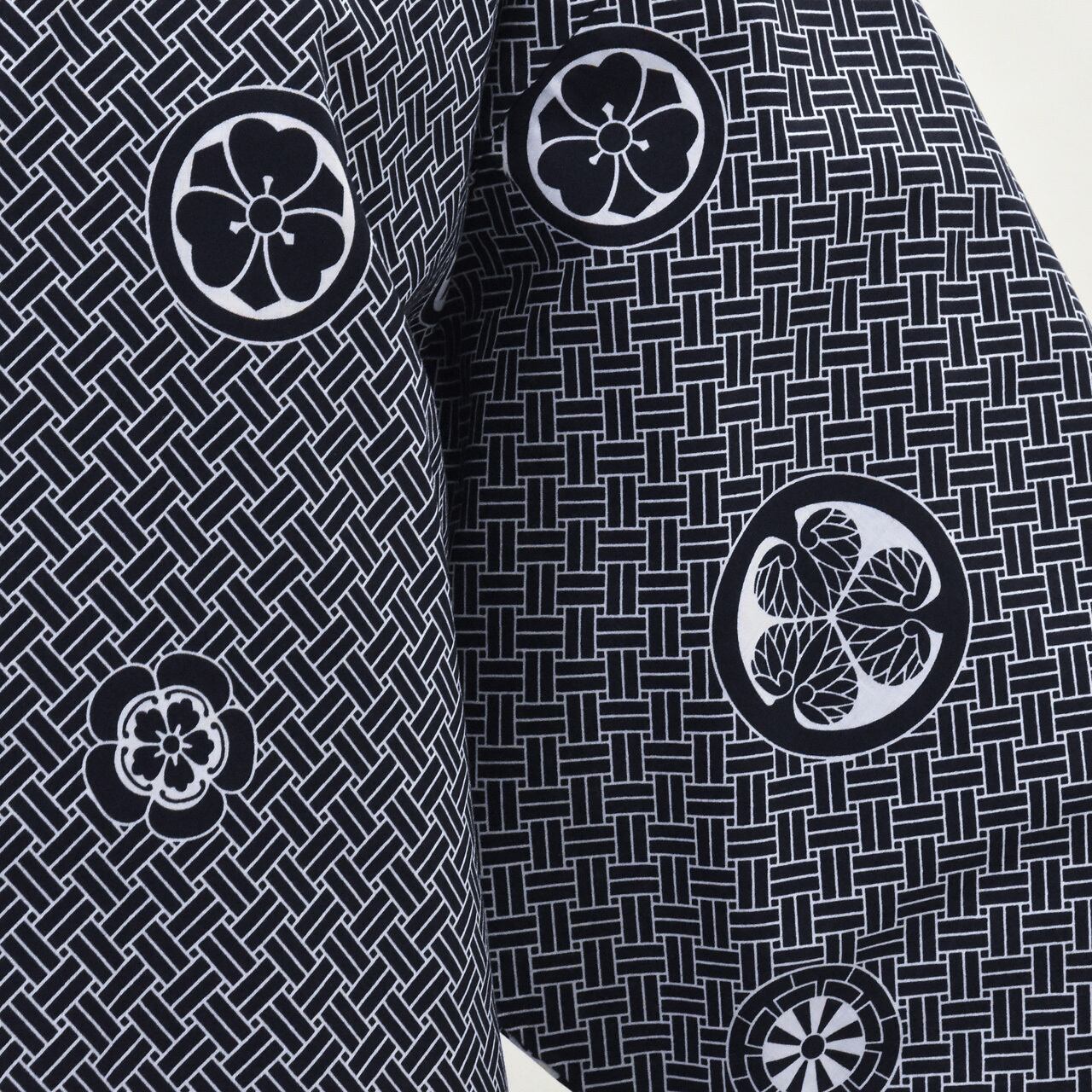 『網代』という昔ながらの江戸小紋の上に、様々な《家紋》が描かれています。
