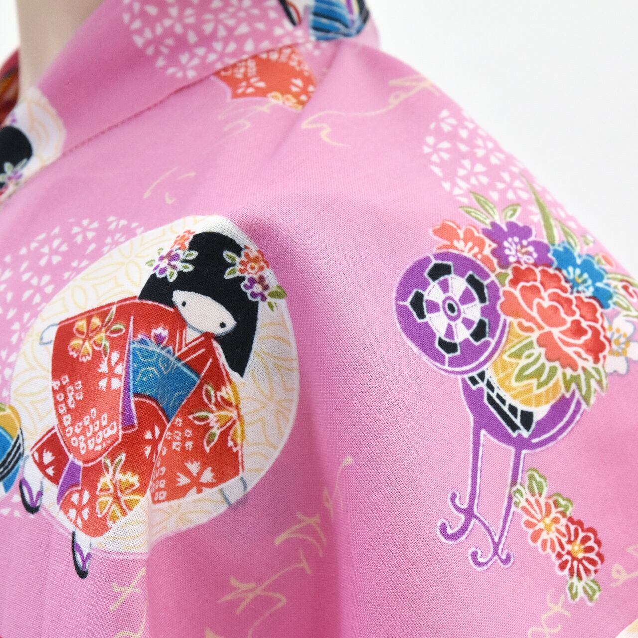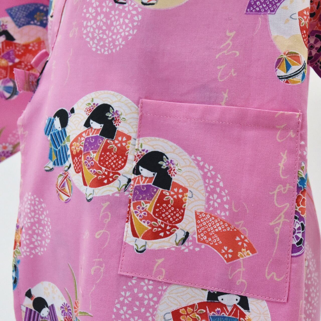 ☆ソフトな着心地☆キッズ 《わらべ》和柄甚平【KID'S "KIMONO GIRL" JACKET & SHORTS ("JINBEI")】SIZE: SS ~ M(90~110cm)PINK/RED 上下 セットアップ KIDS 綿100% 和風 和服 パジャマ 部屋着 人気 春夏 おうち時間 おうちコーデ お出かけ 夏休み 夏祭り ギフト