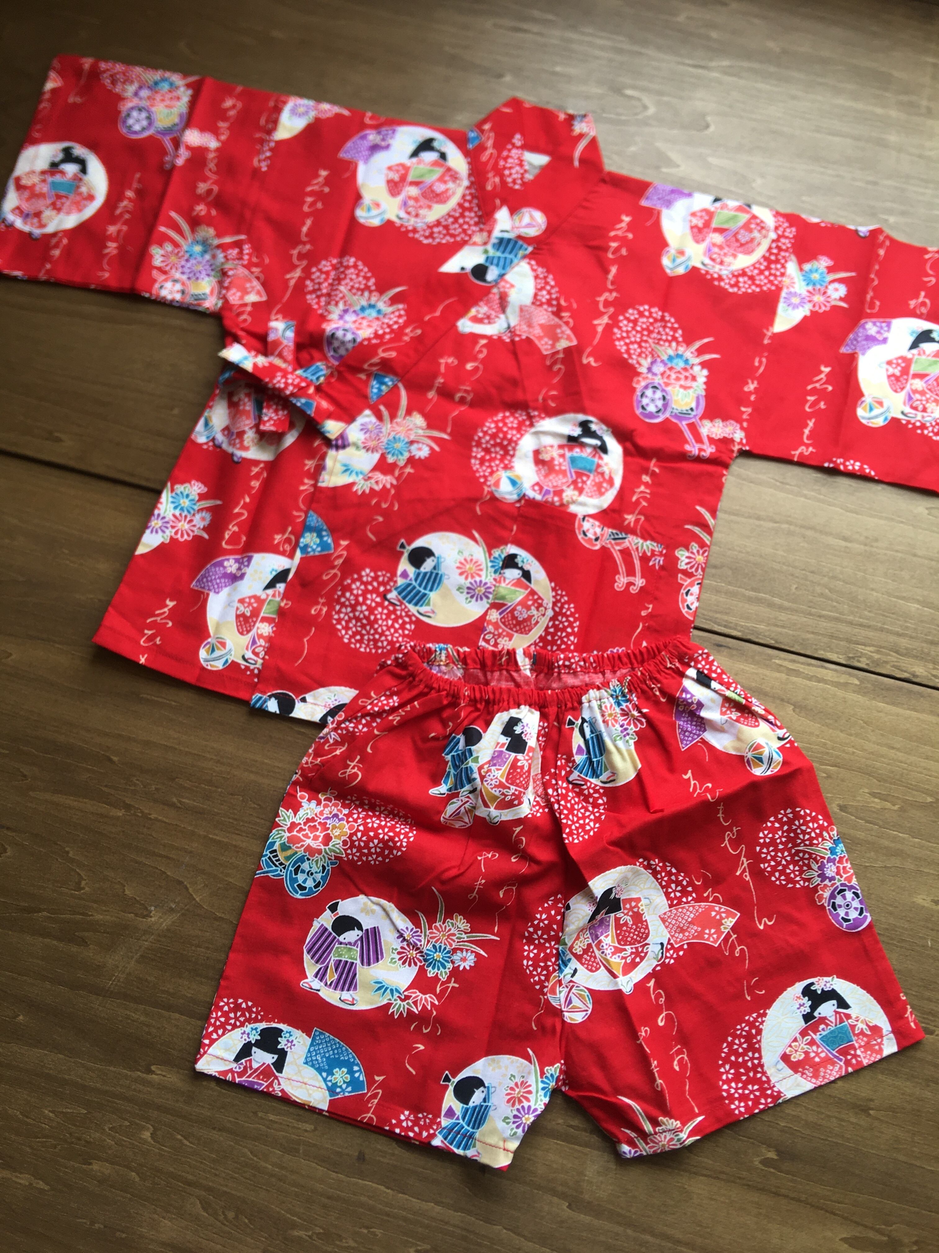 【送料無料】☆ソフトな着心地☆キッズ 《わらべ》和柄甚平【KID'S "KIMONO GIRL" JACKET & SHORTS ("JINBEI")】SIZE: L ~ XL(120~130cm)PINK/RED 上下 セットアップ KIDS 綿100% 和風 和服 パジャマ 部屋着 人気 春夏 おうち時間 おうちコーデ お出かけ 夏休み 夏祭り ギフト