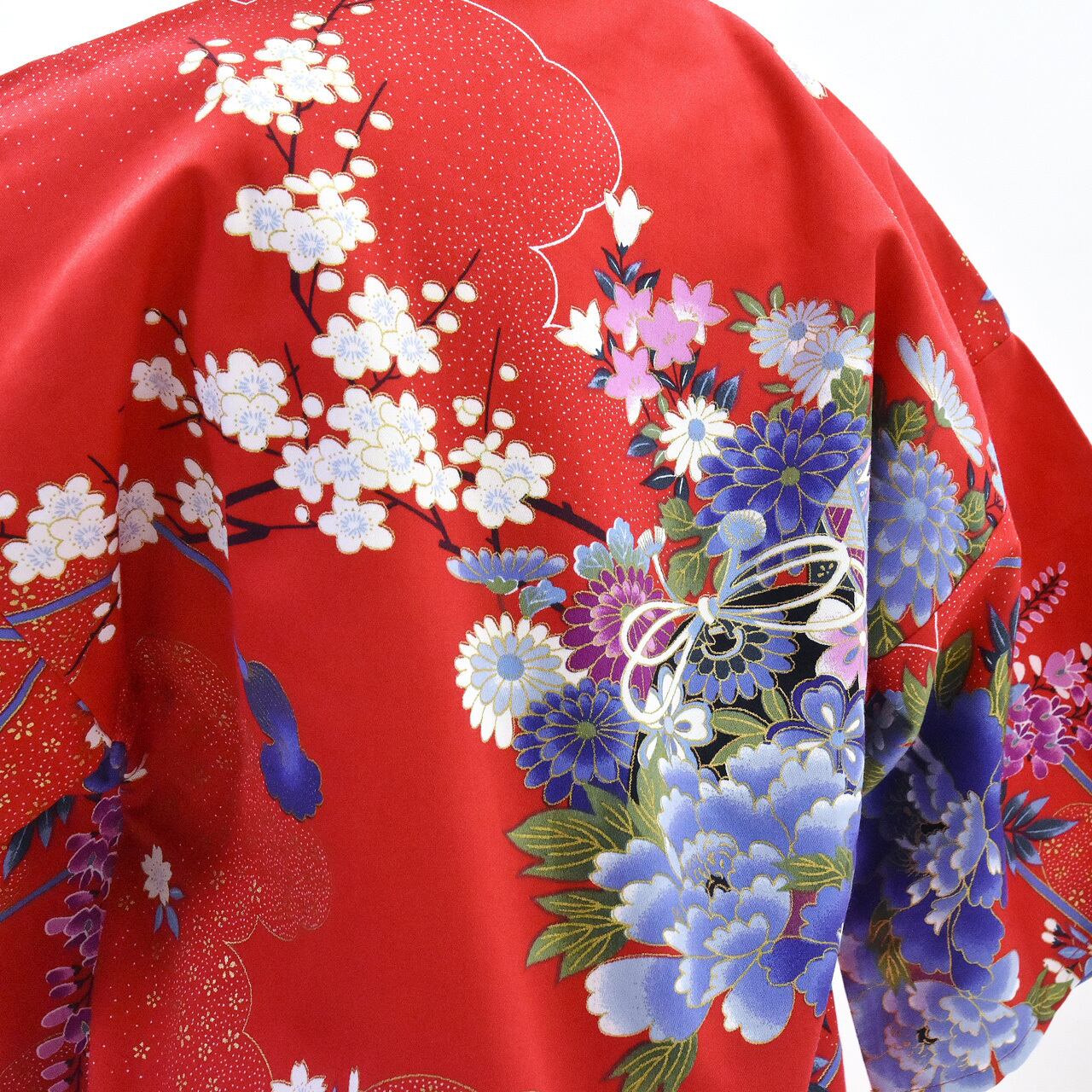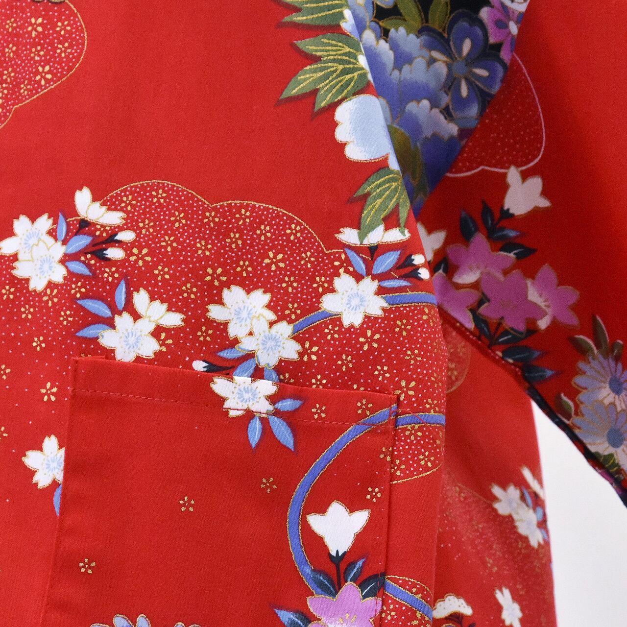 ☆ソフトな着心地☆キッズ 《鈴》和柄甚平【KID'S "THE SYMPHONY OF BEAUTY" JACKET & SHORTS ("JINBEI")】SIZE: L ~ XL(120~130cm)RED/PINK 上下 セットアップ KIDS 綿100% 和風 和服 パジャマ 部屋着 人気 春夏 おうち時間 おうちコーデ お出かけ 夏休み 夏祭り ギフト