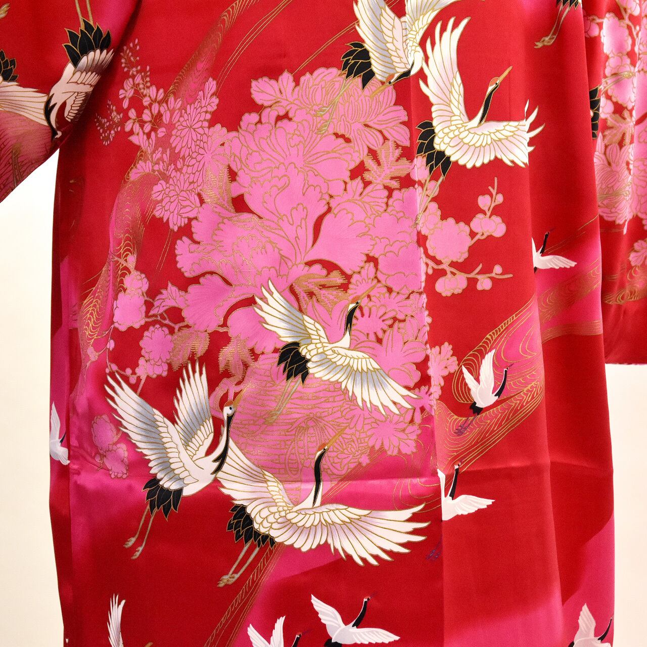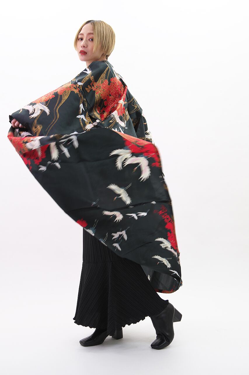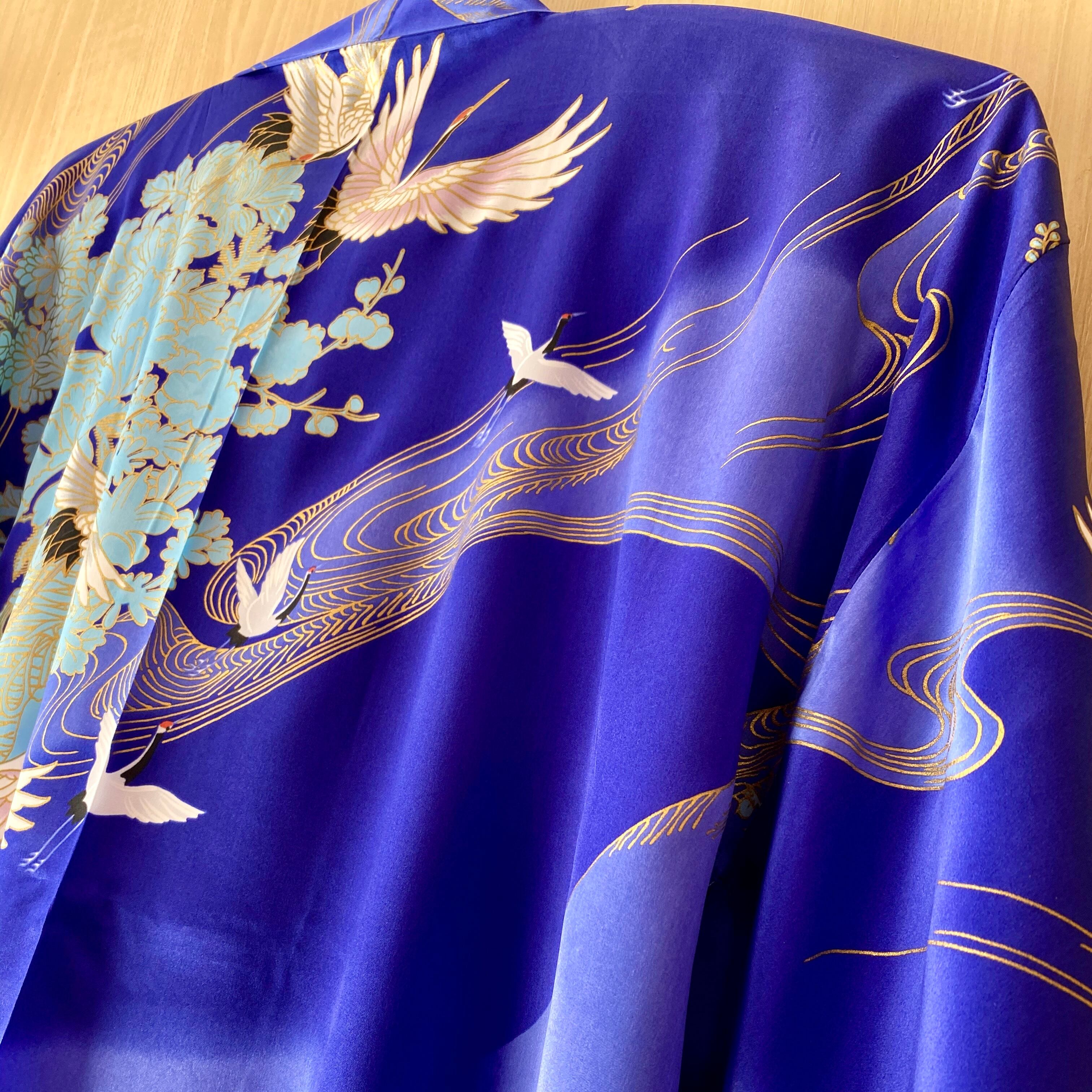 【送料無料】△▼超絶ソフト♪△▼高級シルク《ツル》KIMONOローブ【 "CRANE" KIMONO ROBE 】 ONE SIZE LADIES PURE SILK 100% LONG TYPE MADE IN JAPAN 日本製 トップス アウター 和服 和柄 和風 レトロ 和モダン 和コーデ 和ローブ ロング丈 コート マント 羽衣 天女 部屋着 コスプレ 衣装 お出かけ 日本土産 人気