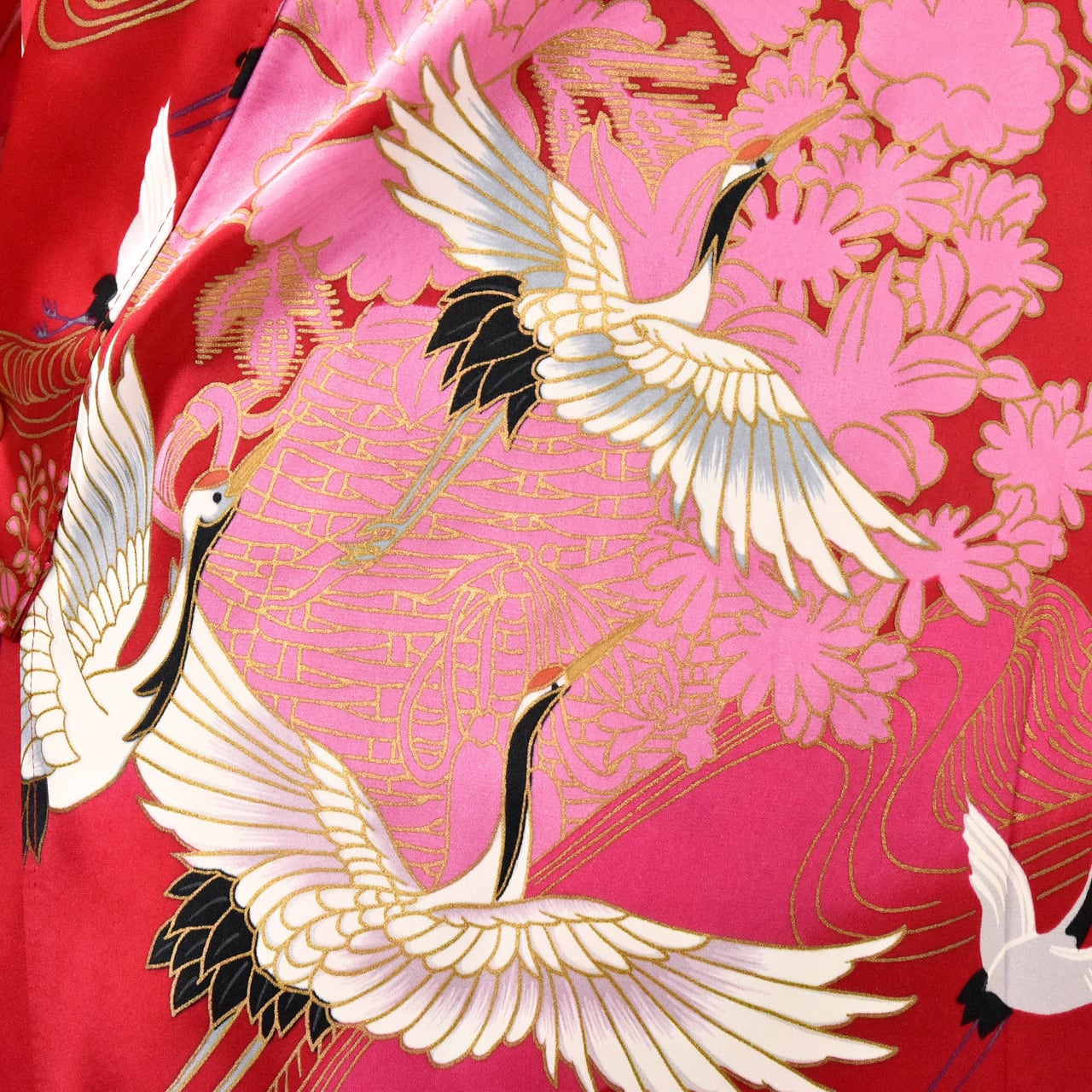 長寿のシンボルのツルの群れが天空に羽ばたくオリエンタルなデザインです。